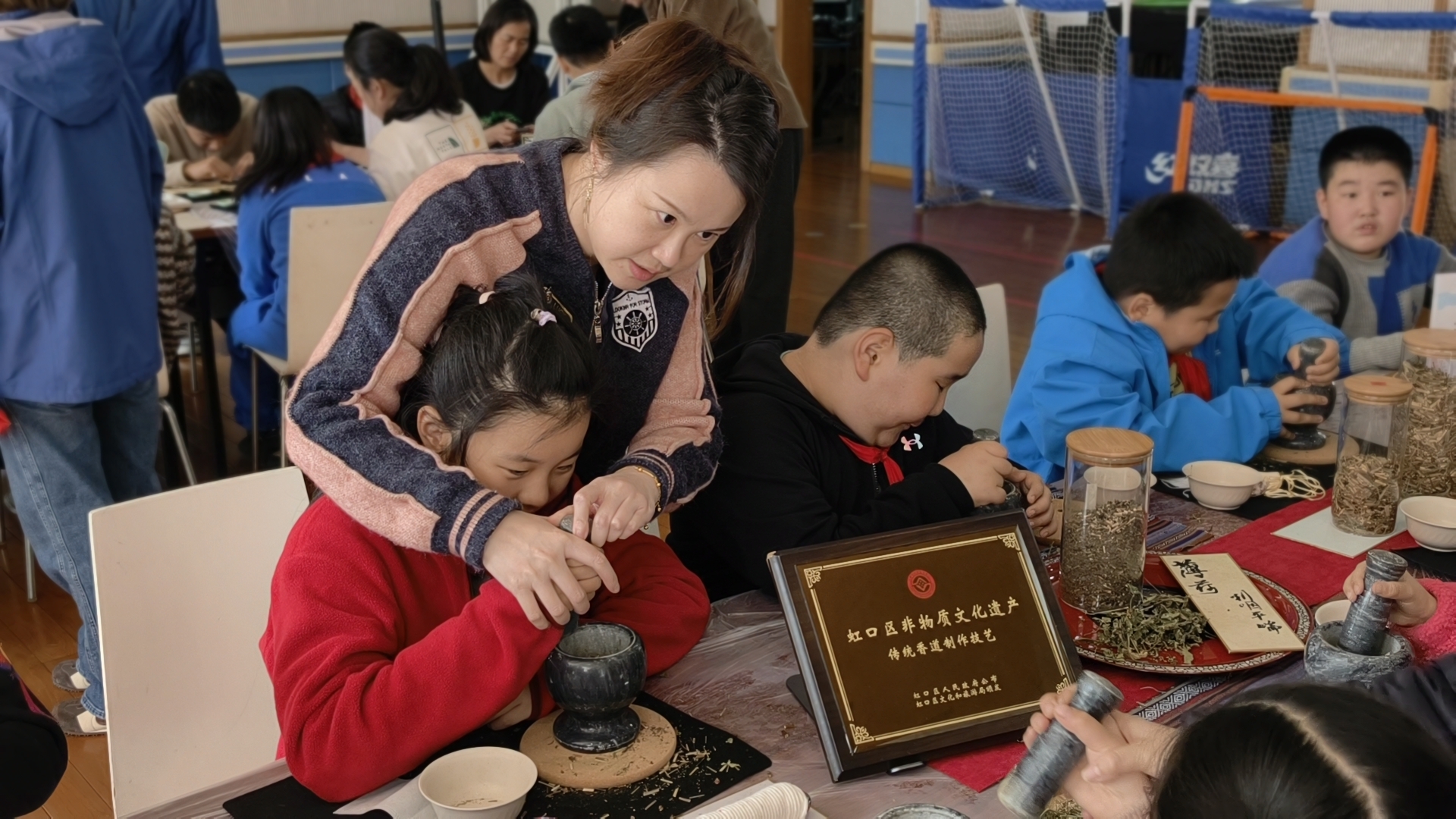 在志愿者和老师的引导下,低年级学生将艾草、薰衣草等天然香料装入五彩锦囊,在动手操作中培养了专注与耐心。小小香囊,清香缕缕,承载着对孩子们健康平安的美好祝愿。